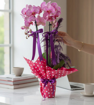 Kırçıllı Fuşya Orkide Aranjmanı İki Dal
