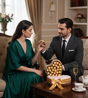 - Rocher’in Işıltısı: Üstteki kalbin içinde saklı olan altın yaldızlı Ferrero Rocher topları, sevginizin paha biçilemez ve değerli bir hazine olduğunu simgeler.