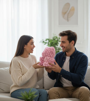 “Pembenin en zarif tonu, aşkın en masum haliyle buluştu. Yüzlerce minyatür gülün el işçiliğiyle bir araya gelmesiyle doğan Pink Teddy, sevdiğinize olan bağlılığınızı ve hayranlığınızı