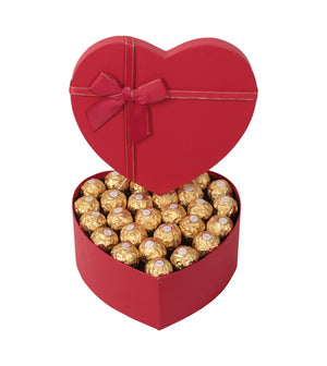 Şık, fiyonklu kalp kutusunun içerisinde; altın sarısı paketleriyle göz kamaştıran, çıtır fındık ve
