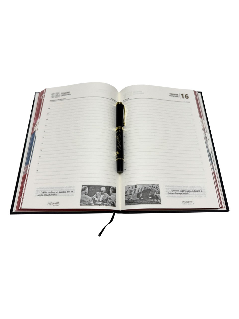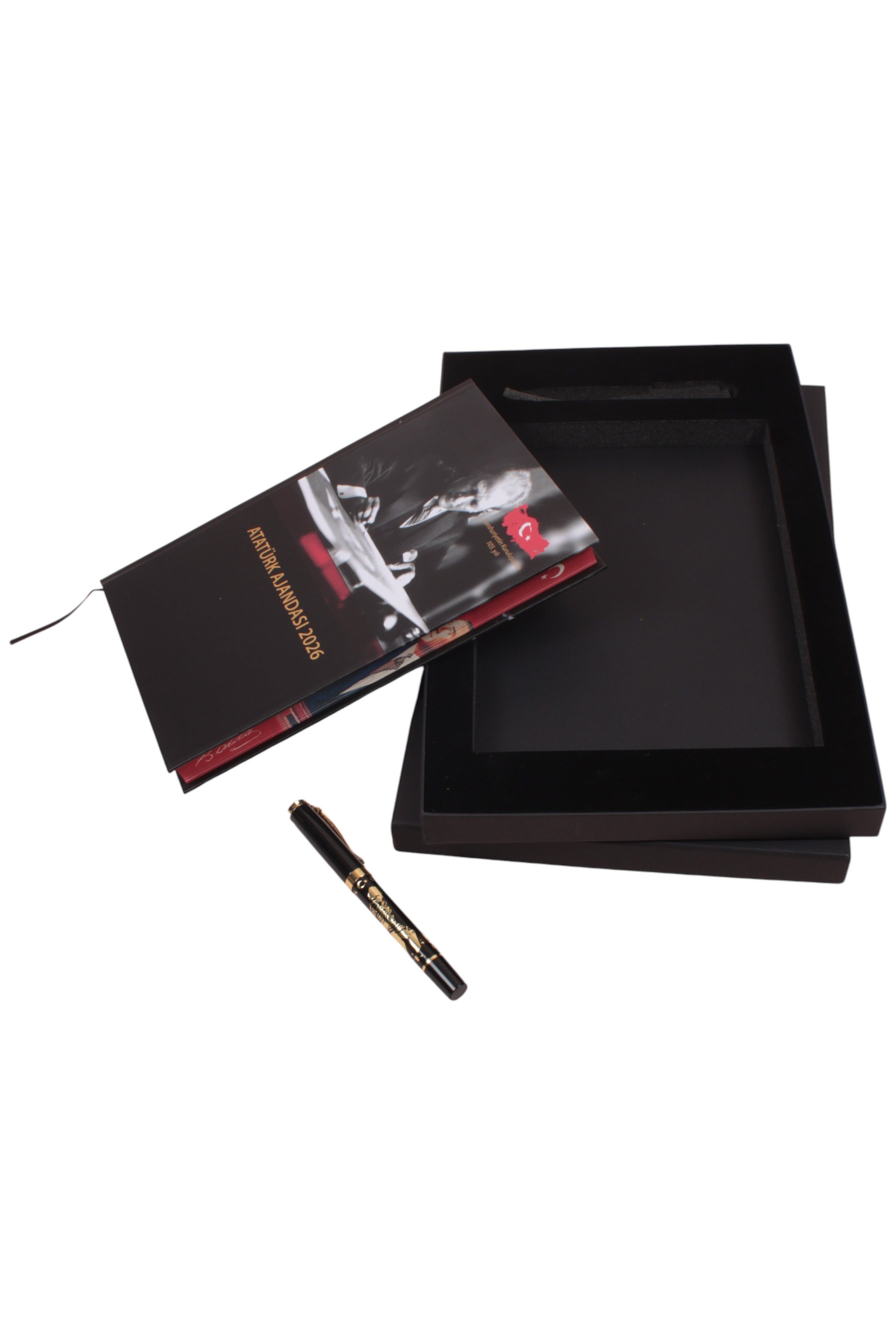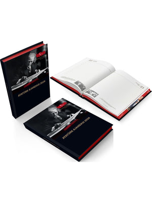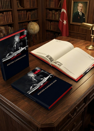 В комплект входит ежедневник на 2026 год, посвященный Ататюрку. Содержание ежедневника обогащено важными датами на протяжении всего года и вдохновляющими цитатами Ататюрка.