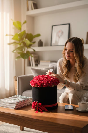 Эта бархатная шкатулка — больше, чем просто подарок; это воплощение того страстного, романтического момента, который неожиданно наступает в полночь. Насыщенно-красные розы внутри — это не просто цвет; они символизируют клятвы, непоколебимую страсть и вечную преданность. Эти розы несут в себе обещание, которое никогда не исчезнет.